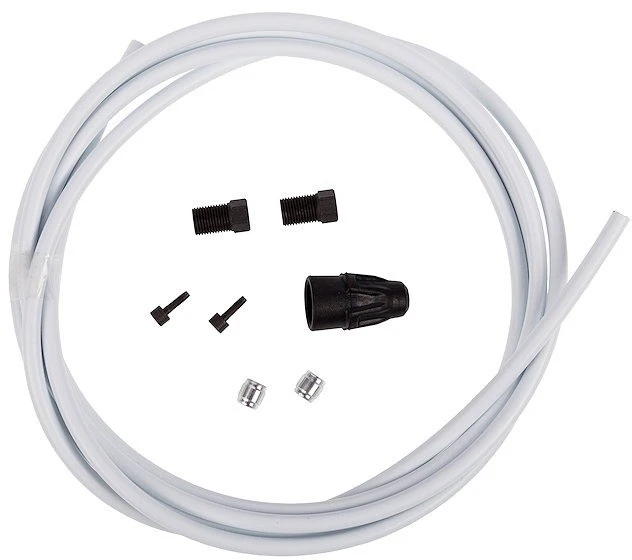 Das Bremsleitungsset von Avid besteht aus einer Hydraulik-Bremsleitung samt Anschlussmaterial und besitzt eine Länge von 2000 mm. Die Leitung ist mit verschiedenfarbigen Überzügen erhältlich und reicht zur Verwendung an einer Bremse (Vorder- oder Hinterrad).