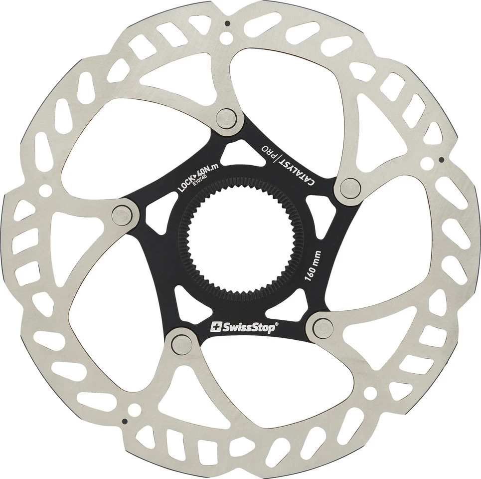 Die Catalyst Pro von Swissstop ist eine zweiteilige Center-Lock-Bremsscheibe mit einem steifen Aluminium-Spider und einer für jeden Durchmesser spezifisch optimierten Materialstärke. Ihre Haltbarkeit und Performance wird von Top-Teams im Road-, MTB- und Cyclocross-Bereich sehr geschätzt.